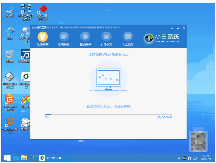 5.当我们电脑进入到 PE 系统中,继续点击打开装机工具进行win7系统的安装。