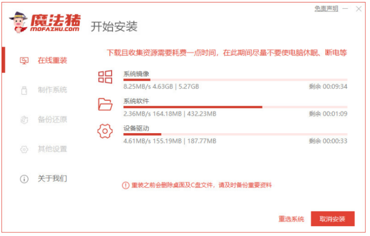 3、此时正在开始下载系统镜像、软件、设备驱动等等。