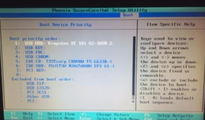 在BIOS界面上将U盘调整为第一启动项。