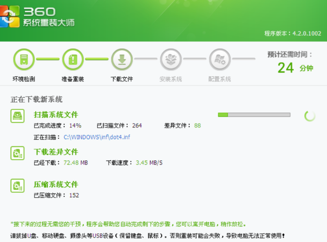 6、重启电脑进入360一键装win7系统过程,装机过程会 有多次的重启;