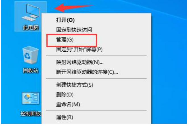 1、右键“此电脑”,在打开的菜单中点击“管理”.