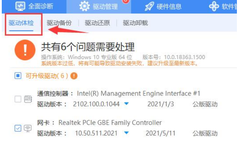 5、卸载完成后,进入“驱动体检”,就可以重新安装了 。