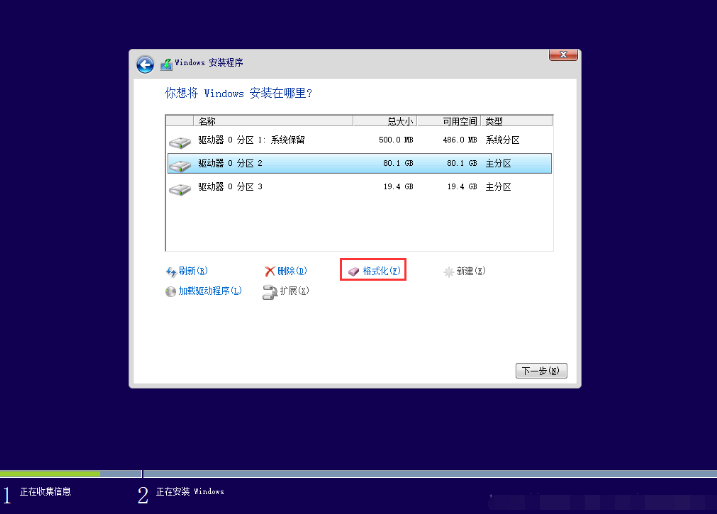 5、选中“驱动器 0 分区2”,点击“格式化”