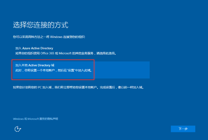 10、选择“加入本地Active Directory域”,点击“