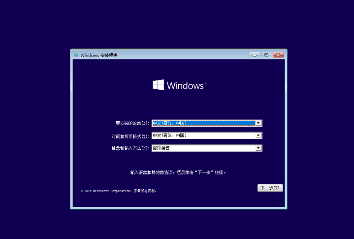 、出现系统安装对话框,默认设置点击“下一步”继续‘。