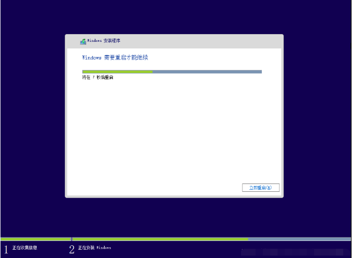 7、此时系统会自动安装Windows10系统,完成后会出现重启界面,拔掉U盘,让其自动重启。