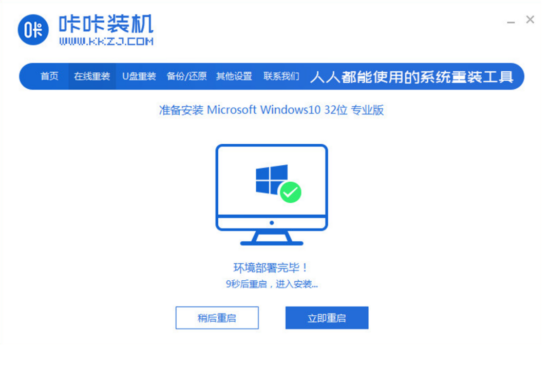 3、下载完成之后自动进行环境部署,提示部署完成后立即重启电脑。