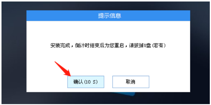 3、系统安装完成,拔出U盘;