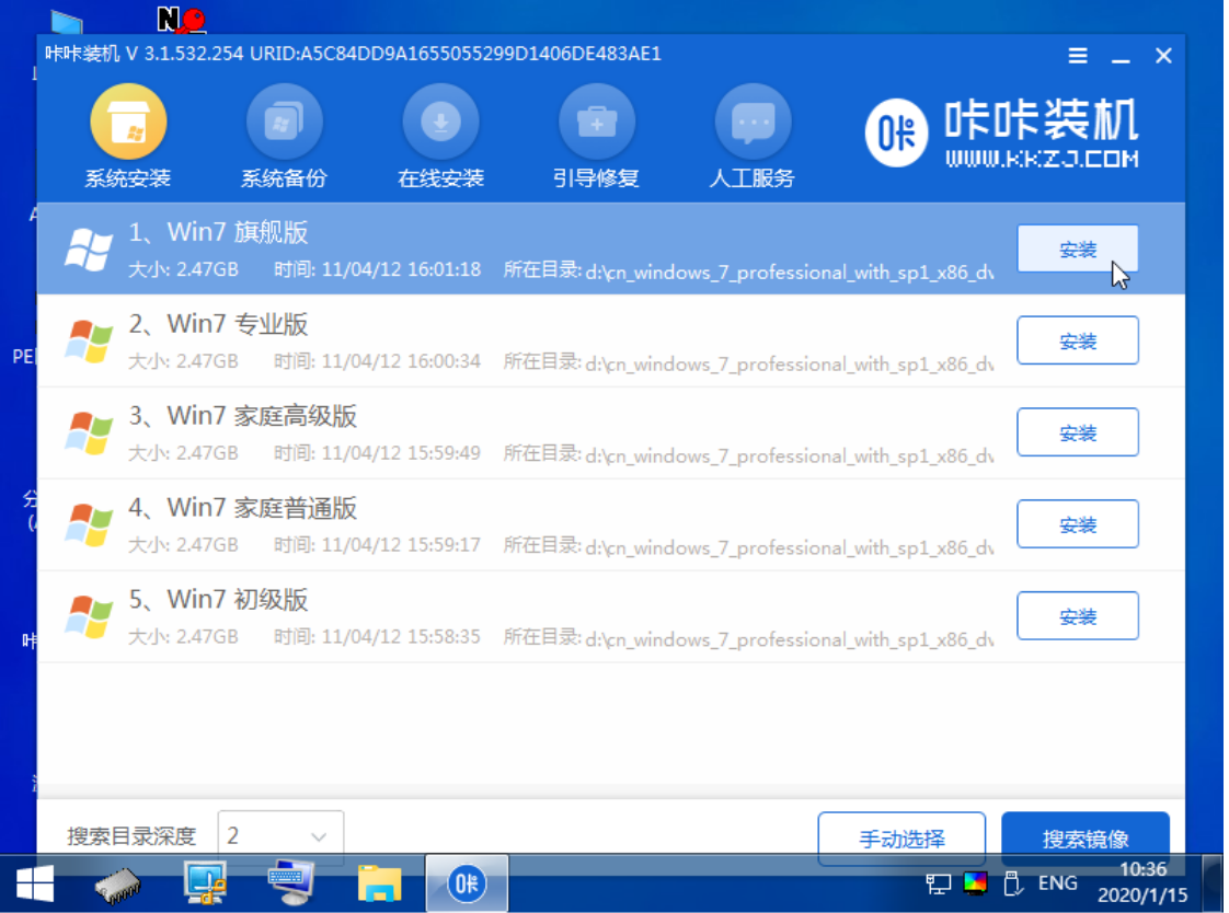 5、打开咔咔装机工具,选择需要安装的系统点击安装到系统c盘。