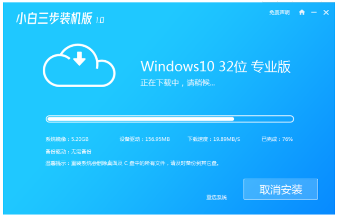 方法一:借助小白三步装机版工具给电脑重装win10系统
