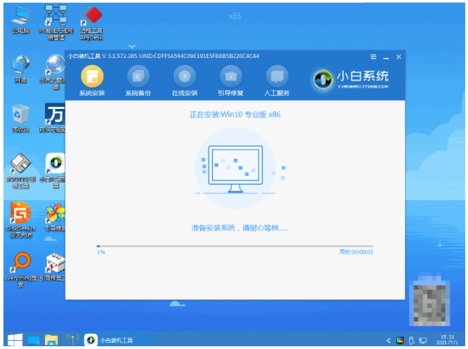 5、进入电脑pe系统界面,继续安装Windows10系统。