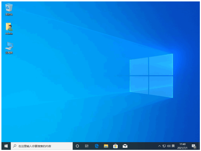 9、直至进入windows10系统桌面,即电脑重装系统完成。