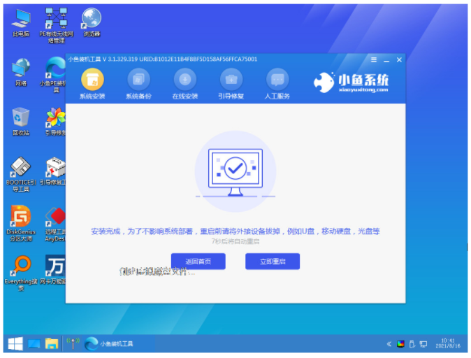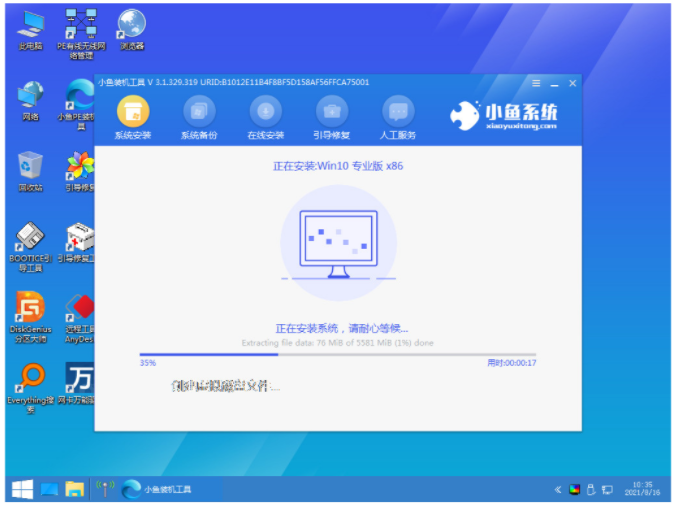 3、进入小鱼的pe系统,继续进行安装系统操作;