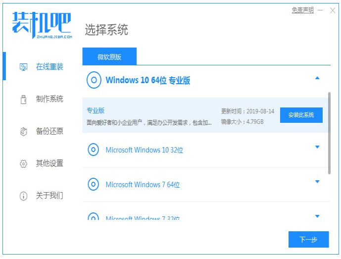 方法二:装机吧一键重装系统软件在线重装win10系统