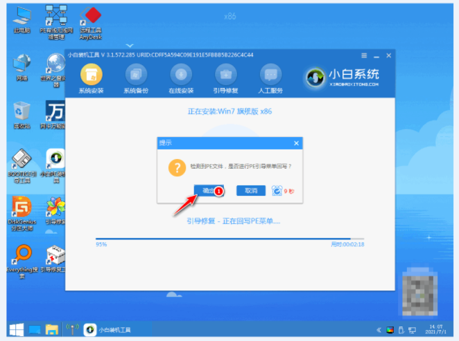 6、在 PE 系统中打开小白装机工具就会自动帮我们进行安装系统,耐心等待。