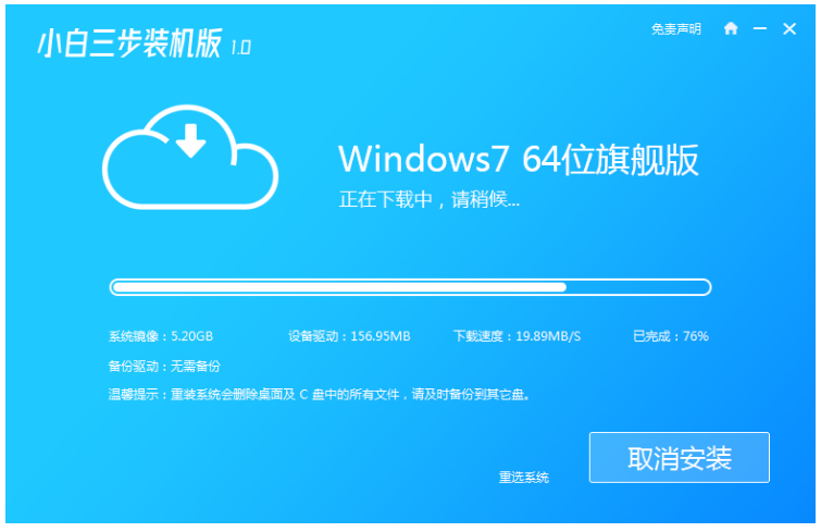 2.耐心等待软件自动开始下载win7系统软件以及驱动程序等等。