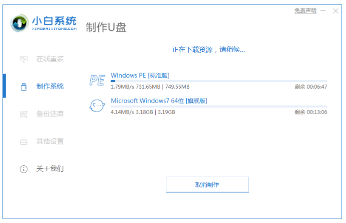 1、耐心等待软件自动开始下载win7系统镜像文件资料;
