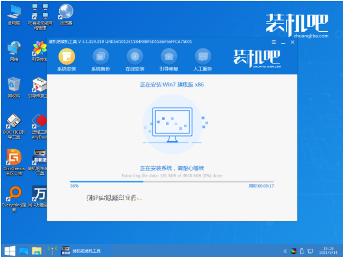 3、在pe系统打开装机吧工具,继续进行系统安装;
