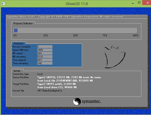 3、在弹出的提示窗口,确认执行还原系统,接着耐心等待系统还原过程,如下图所示:
