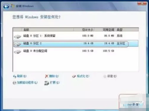 4、完成分区之后,选择我们需要安装的位置,点击下一步,开始安装。