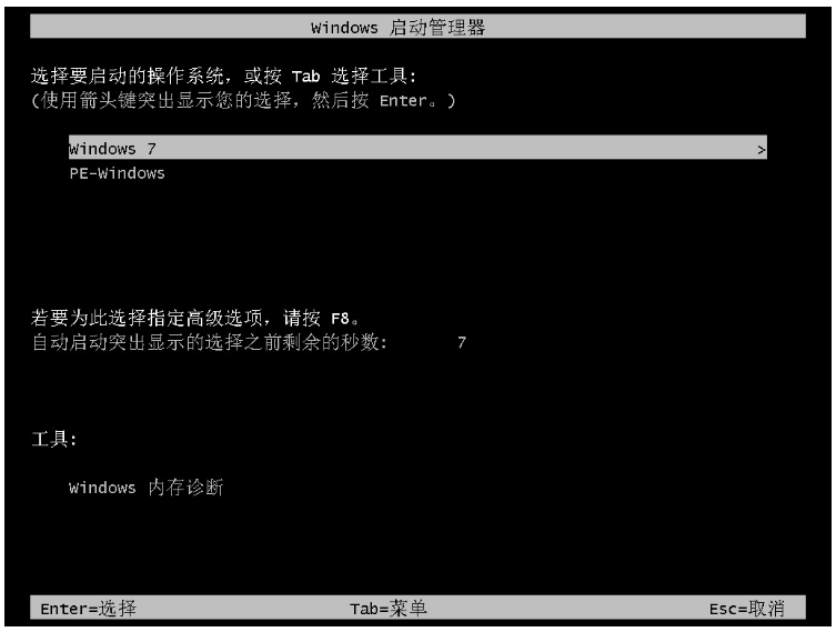 7、重启电脑的时候选择win7系统按回车键进入其中。