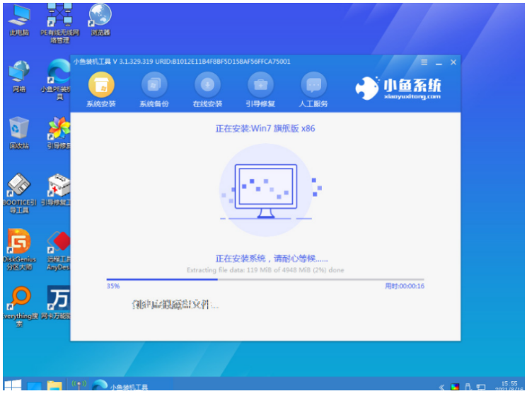6、进入pe系统界面内,小鱼装机软件此时将会自动开始安装win7系统。