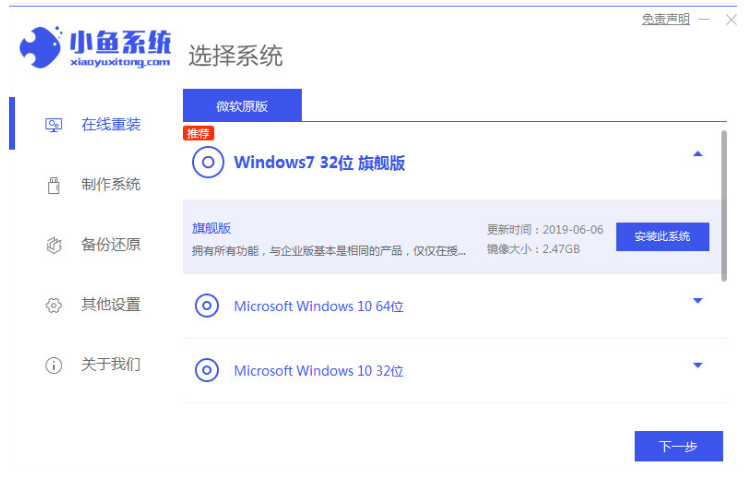 方法二:使用小鱼一键重装系统软件安装windows7系统