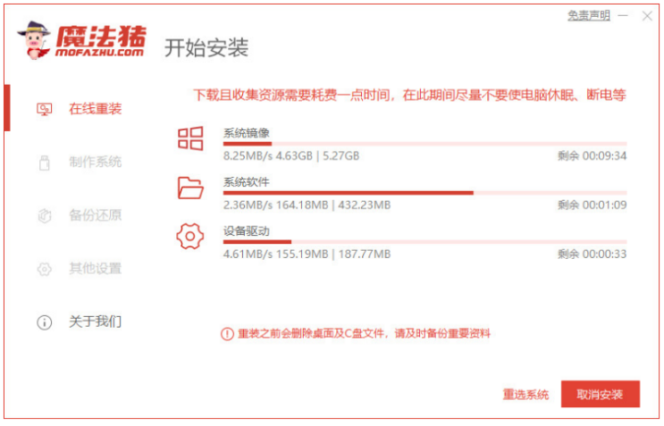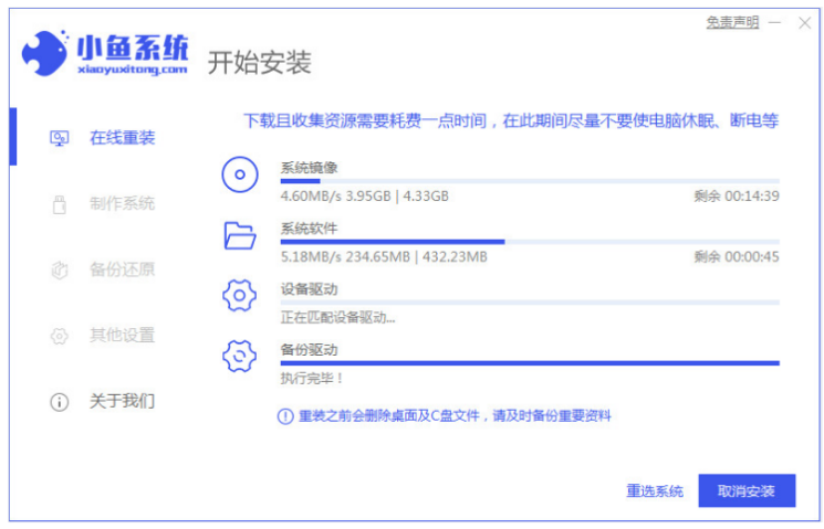 2、进入界面之后电脑此时将会开始下载系统镜像文件及驱动设备.