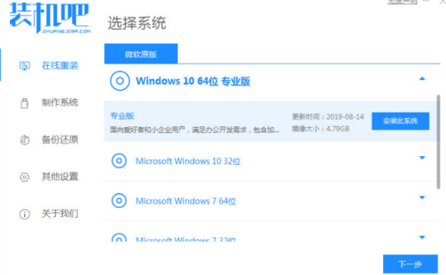 1.首先我们准备一个8g以上的u盘,然后在电脑上面下载并打开装机吧软件,点击制作系统,这里我们选择win7系统为例子。