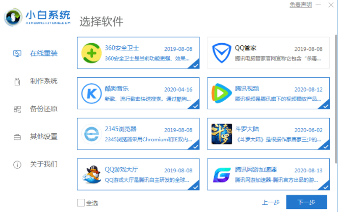 1.首先我们在小白系统官网上下载一个小白一键装机然后打开,选择在线重装。