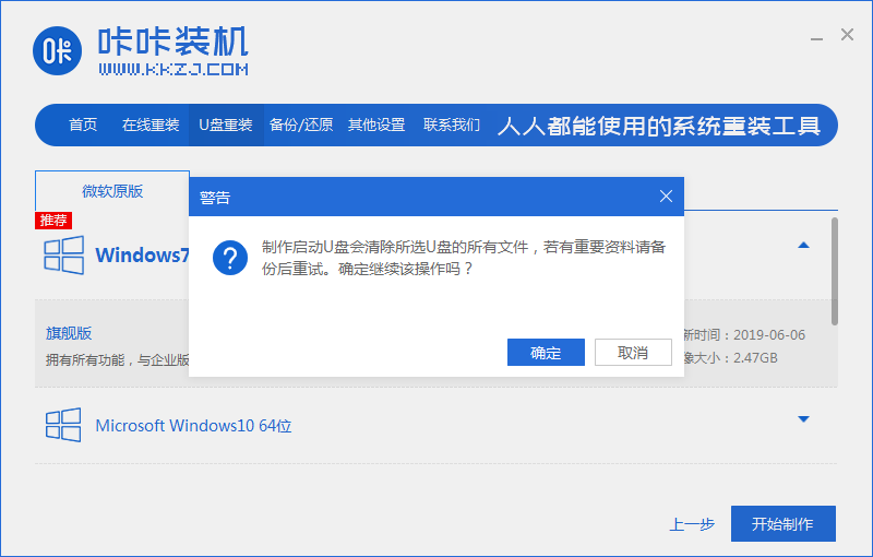 4、确认好u盘内的重要资料都已保存妥当,点击确定。