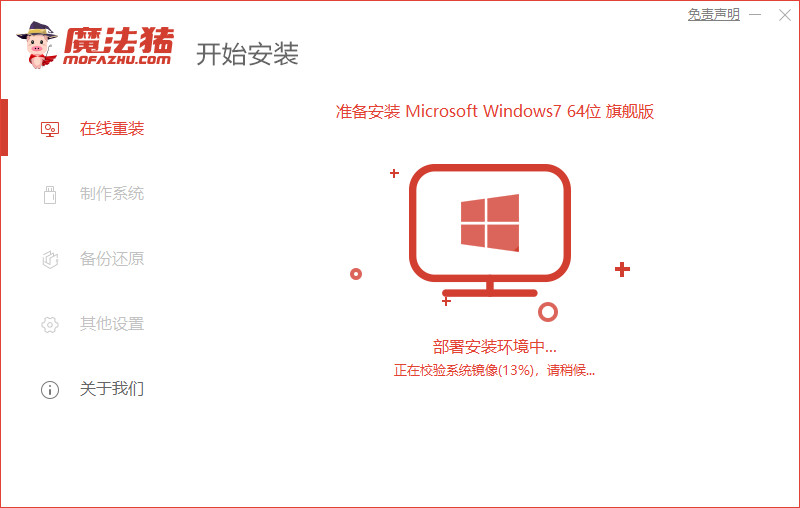 3、使用魔法猪装机工具重装win7系统