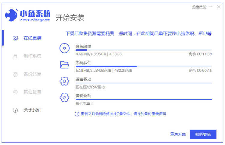2.进入界面之后电脑将会开始下载系统镜像文件及驱动设备等等。