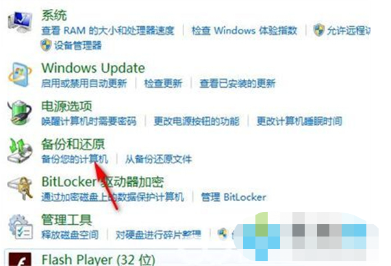 4、在备份计算机中点击恢复系统设置或计算机。