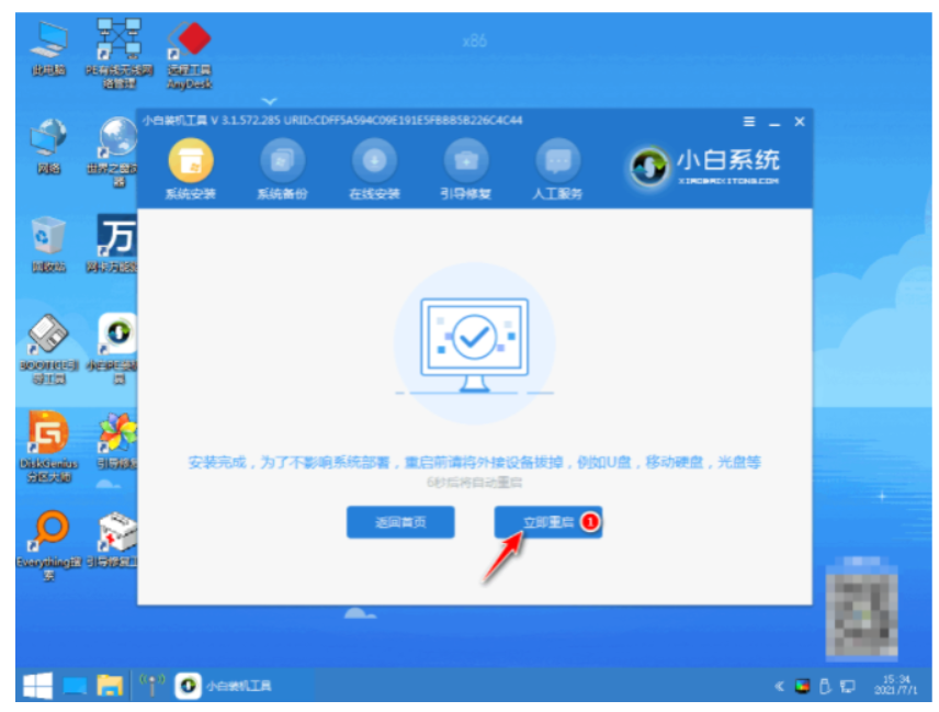6、电脑系统安装完成之后,就可以再次点击重启电脑按钮。