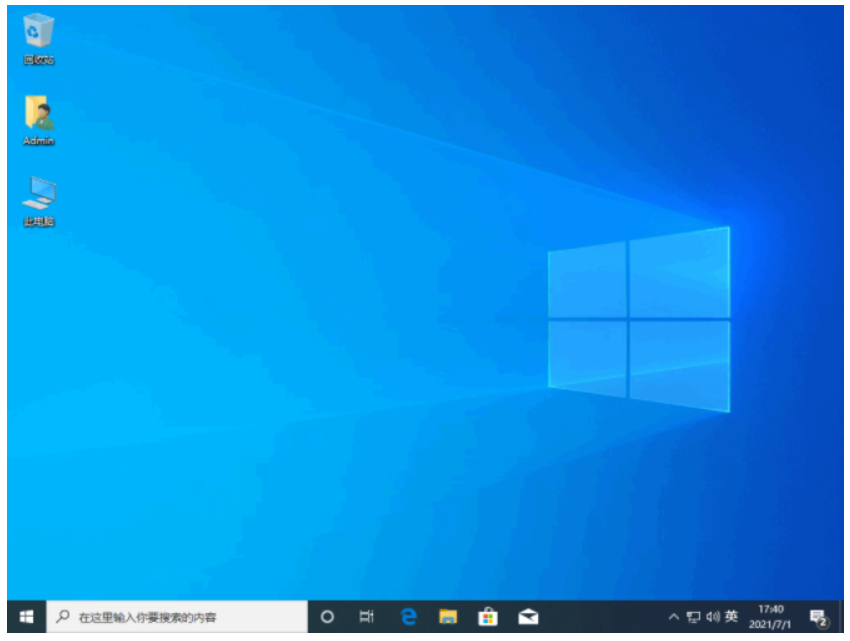 7、直至电脑进入到安装好的win10系统桌面即说明系统安装完成了。