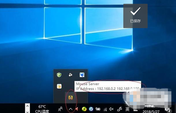 2、如下图演示,点击任务栏通知区域"显示隐藏的图标"按钮。弹出"隐藏的图标"面板,显示无线网卡IP地址为 192.168.0.100。