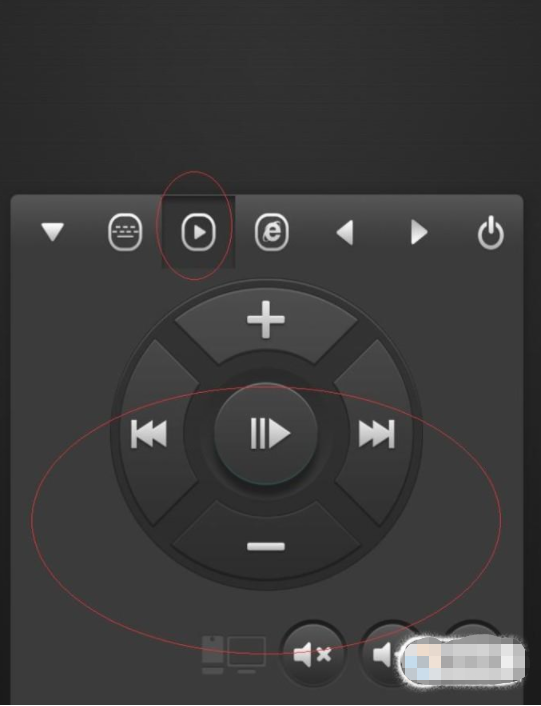 6、如下图演示,点击工具栏"播放"图标。弹出媒体播放组合按钮,可控制电脑媒体播放。