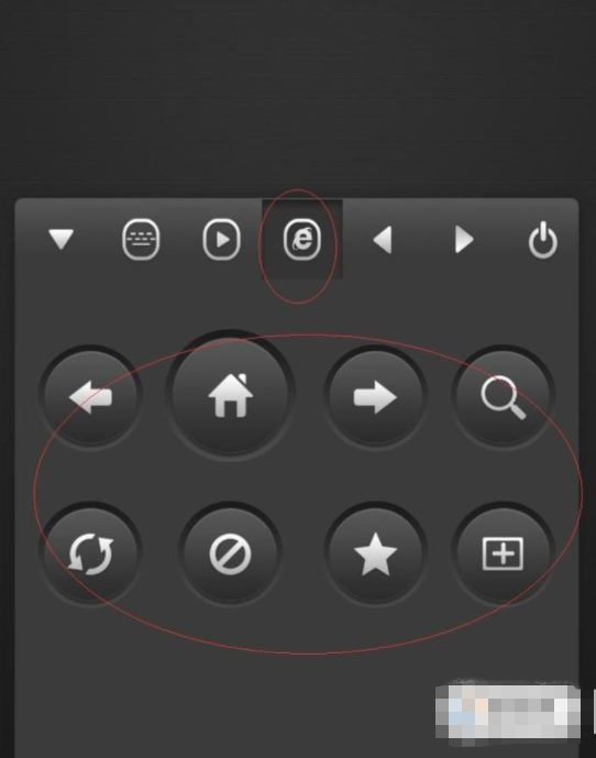 5、黑色区域滑动手指可移动鼠标指针,如下图演示。下方从左至右为鼠标左键、滚轮和右键,点击工具栏"键盘"图标可打开键盘。