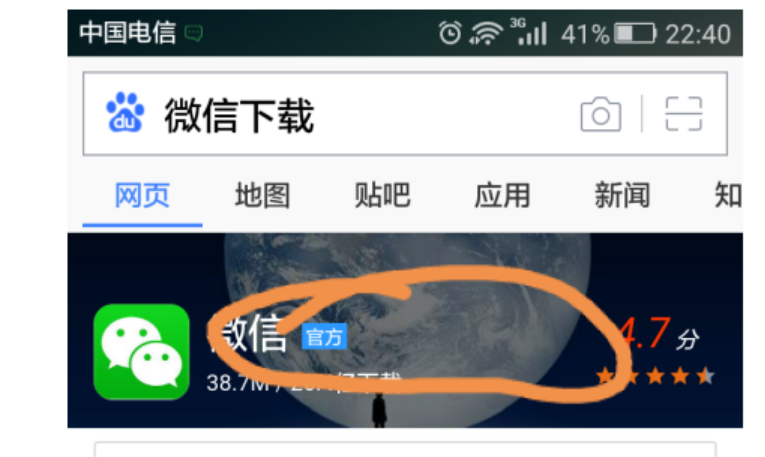 2.在手机浏览器中的【搜索框】中输入【微信】并确认搜索。