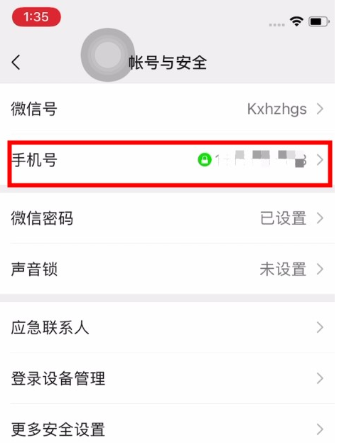 3、进入账号与安全界面,点击“手机号”。