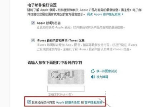 3、填写好所有信息后,勾上“我已经阅读并同意 Apple 的服务条款和客户隐私政策。”点击“创建 Apple ID”按钮,如果信息输入无误,系统会提示您Apple ID已经创建好了。