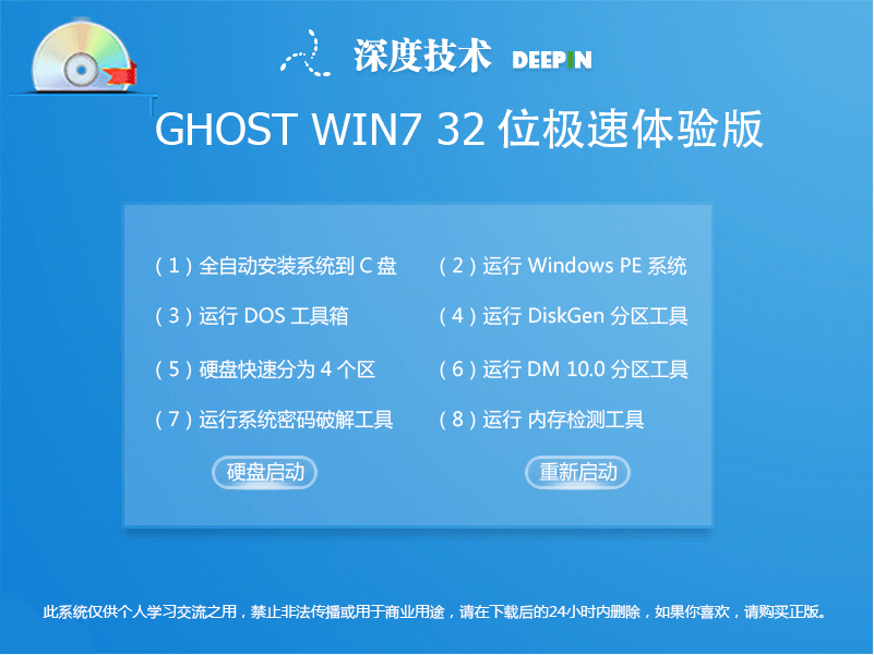 (深度技术Ghostwin732位极速体验版)源于win732位原版基础上进行适当精简和优化的系统,集成最新,最常见的电脑系统软件与win732位系统驱动,并且系统干净无毒,按照用户使用习惯作