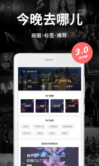 垂直于城市夜间消费领域,在传统的冷信息时代下,定义了一种娱乐顾问的角色,帮助用户解决今晚去哪的个性化需求问题。