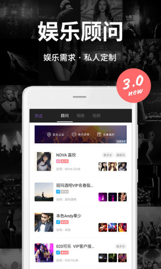 通过聚集娱乐顾问,构建内在分销微商生态,为大众消费者提供预订服务、优惠折扣,解决个性化需求。另外,提供品牌活动、主题派对、优质演艺、世界巨星莅临等娱乐资讯,打造夜间娱乐消费平台。