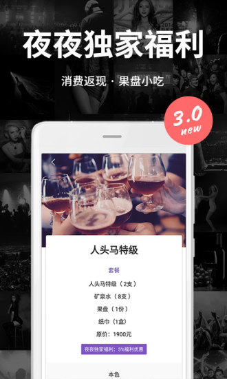 夜夜app是一款专门为广大用户提供娱乐服务的软件。夜夜直播app安卓上汇集了众多娱乐、约玩场所推荐,帮你找到最好的娱乐消遣地,还有海量优惠福利拿到手软!功能强大,绝对是喜欢去夜场的朋友的最爱!