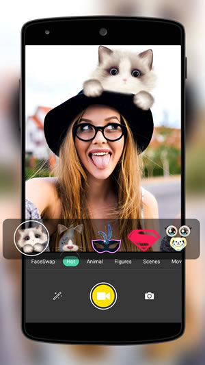 face特效相机app有海量有趣的动态贴纸。动物主题,动漫主题,影视主题等等,一秒钟变身可爱猫咪、搞怪的小丑……录制视频分享到朋友圈,和好友一起玩到停不下来!