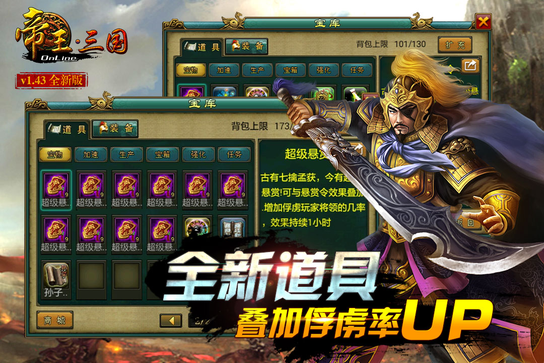 《帝王三国》是一款三国题材的策略战争网游。精彩绝伦的战斗模式,热血沸腾的万人国战,让人欲罢不能!群雄兵戎战场见,万人攻城美名留!承袭三国辉煌,成就王者雄风!携名将一统天下,就待你我!