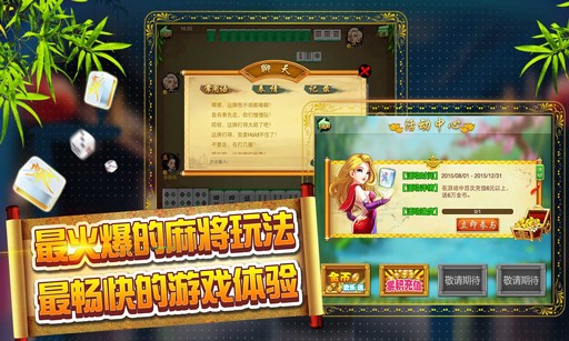贵阳麻将起源于贵州地区,游戏规则:可碰杠,不可吃,无庄。除一般番型外,特色玩法如兴冲锋鸡,责任鸡,满堂鸡等,富有别致趣味性。除了传统的碰、杠等和牌规则外,还加入了-来游戏-独有的加倍卡和比赛卡功能,让你的游戏更好玩。