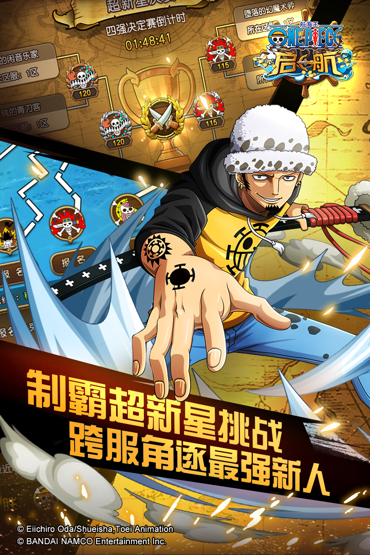 游戏简介: 《航海王 启航》为首款获得ONE PIECE动画官方授权的手机游戏。首创紧张刺激的动作即时操作类玩法,众多原著知名角色现身游戏,创造一股海盗团新势力驰骋大海,走向成为海盗王的荣耀之路。